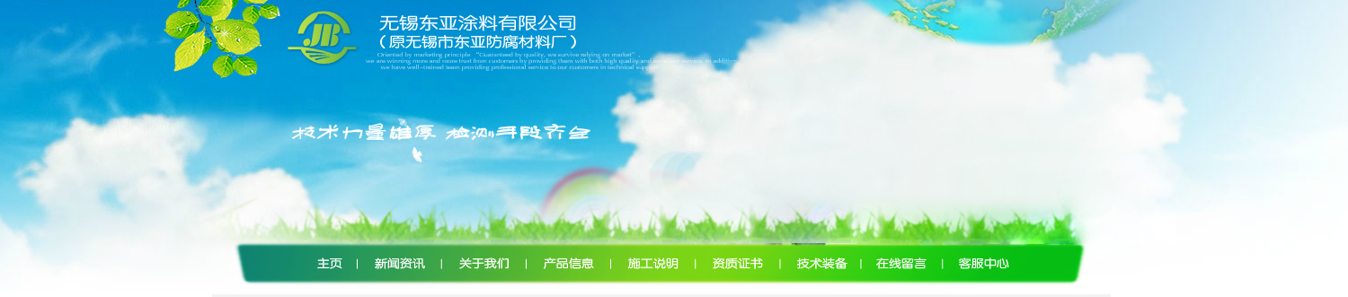 | | Welcome to Dongya Website! / 關于我們 |  | 無錫東亞涂料有限公司(原無錫市東亞防腐材料廠),自一九八三年開始從事防腐涂料的研制和生產,至今已有二十八年的歷史。工廠已具備年產一萬噸各類涂料的生產能力,共生產十八大類,計二百... | | Product Directory / 產品目錄 |